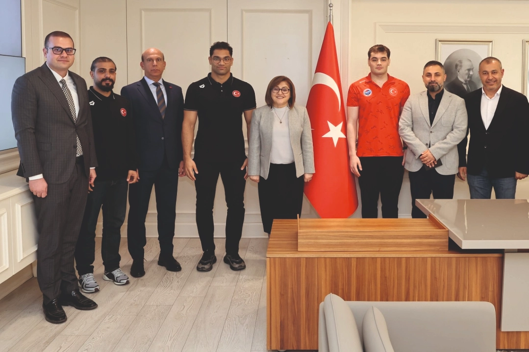 Gaziantep Büyükşehir Belediye Başkanı Fatma Şahin, yüzme branşında “Olimpik Kadro Sporcusu” olarak kariyerini sürdüren Milli Yüzücü Kaan Kara ile paletli yüzme branşında Türkiye rekorlarının sahibi, Avrupa Şampiyonu Kaan Efe Kaya’yı makamında misafir etti. Ay-yıldızlı sporcular, 2025-2026 sezonunda Gaziantep Belediye Spor Kulübü mayosu ile yarışacaklar.
