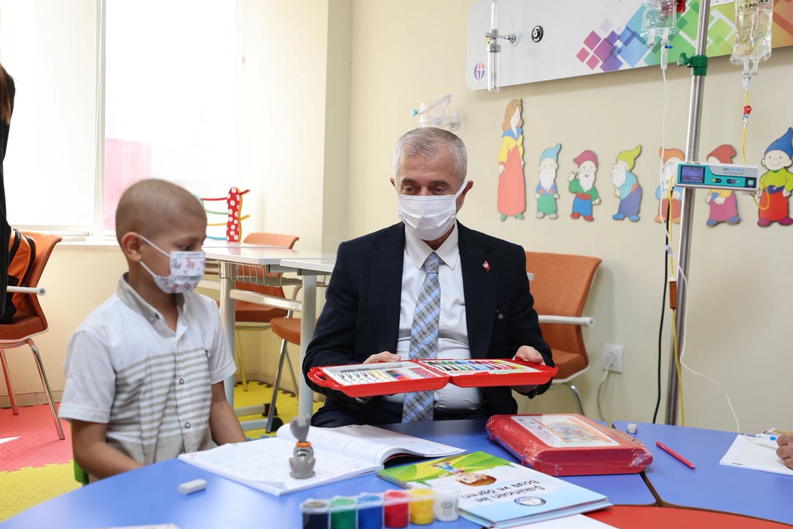 Şahinbey Belediye Başkanı Mehmet Tahmazoğlu, Gaziantep Üniversitesi Onkoloji Hastanesi’nde tedavi gören lösemili çocukları ziyaret ederek onlara moral verdi.