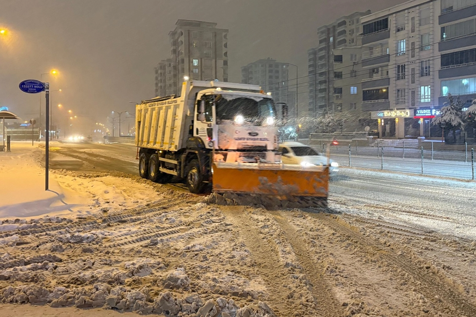 Gaziantep Büyükşehir Belediyesi, gece boyunca etkisini sürdüren kar yağışına karşı sahada görev alarak çalışmalarını aralıksız sürdürdü.