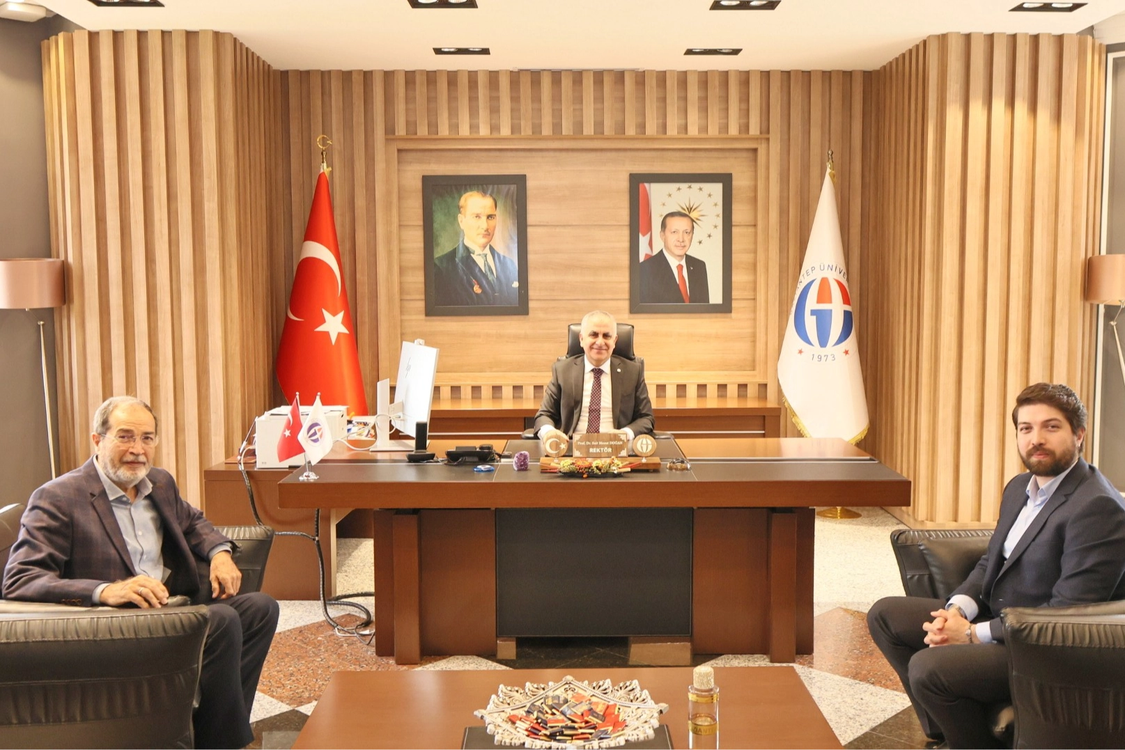 Devlet Malzeme Ofisi Gaziantep Bölge Müdürü Özcan Şahin, Gaziantep Üniversitesi Rektörü Prof. Dr. Sait Mesut Doğan’ı makamında ziyaret etti.