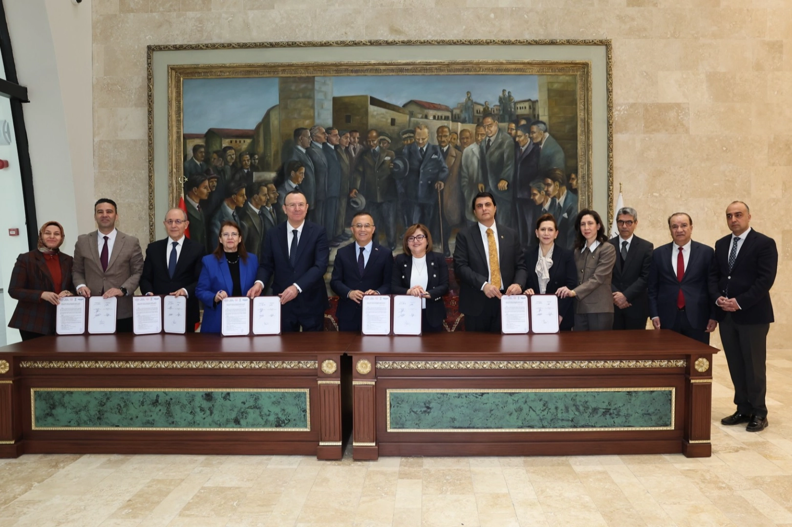 Gaziantep Valiliği Fuaye Alanı’ndaki protokol imza törenine Gaziantep Büyükşehir Belediye Başkanı Fatma Şahin, Gaziantep Valisi Kemal Çeber, Şehitkamil Belediye Başkanı Umut Yılmaz, Gaziantep Aile ve Sosyal Hizmetler İl Müdürü Umut Zeybek ile hayırsever iş insanları Mustafa Topçuoğlu ve Vedat Topçuoğlu katıldı.