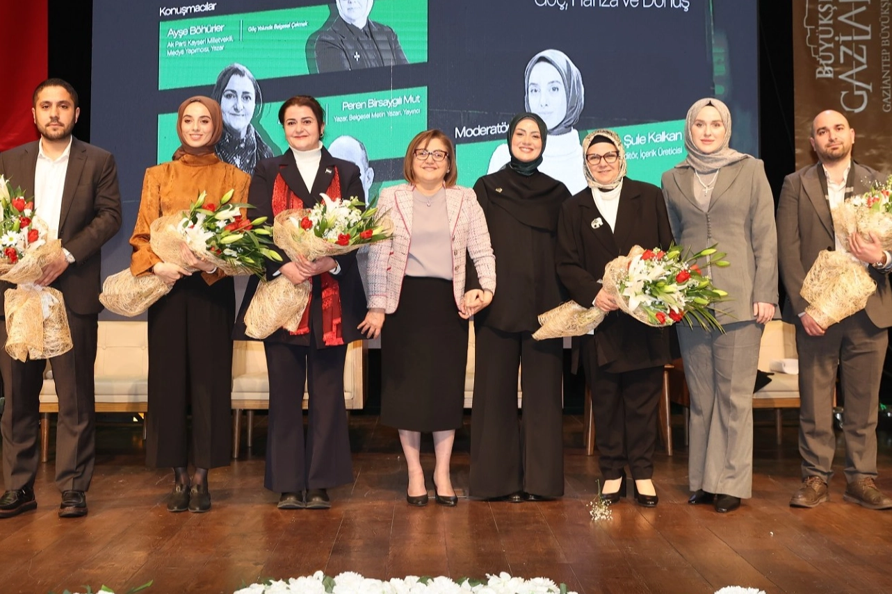 Konuşmanın ardından Başkan Fatma Şahin panelistlere günün anısına çiçek verdi, hatıra fotoğrafı çektirdi.