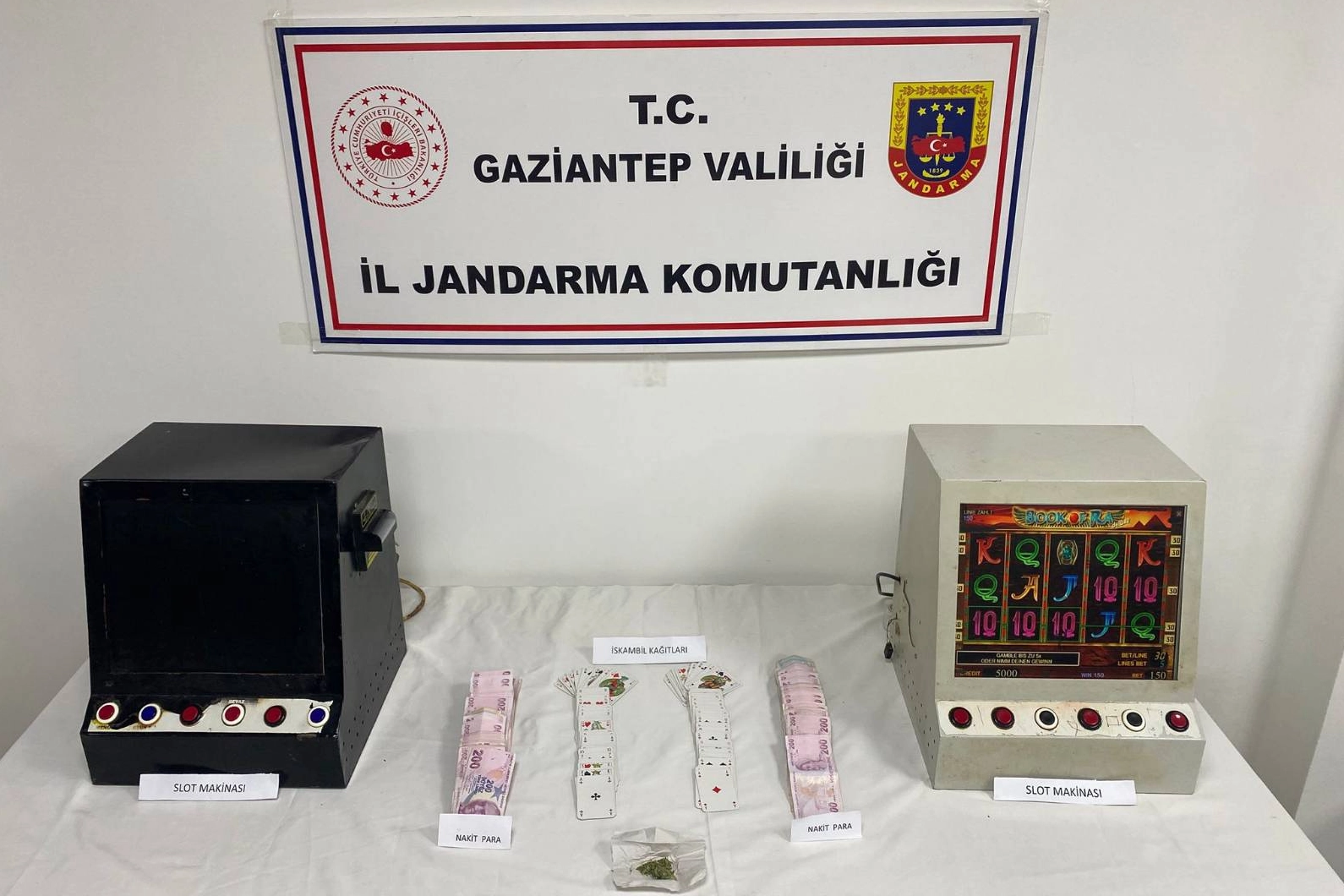 Gaziantep İl Jandarma Komutanlığınca, kumar oynayanlara yönelik Cumhuriyet Başsavcılığı koordinesinde Nizip ilçesinde işyerlerinde kumar oynatıldığının tespit edilmesi üzerine yapılan denetimde kumar oynadığı tespit edilen (9) kişi suçüstü yakalanmıştır. Yapılan denetim sonucu; - 2 gr Kubar Esrar - 2 adet Slot Makinesi, - 2 deste İskambil Kağıdı, - 45.155 TL Nakit para ele geçirilmiştir Kumar oynadığı tespit edilen (9) şahsa idari para cezası, M.T.ve M.S. hakkında ‘Kumar Oynanması İçin Yer ve İmkan Sağlama ve Kullanmak için Uyuşturucu veya Uyarıcı Madde Satın Almak, Kabul Etmek, Bulundurmak ve Kullanmak’ suçundan adli ve idari soruşturma başlatılmıştır.