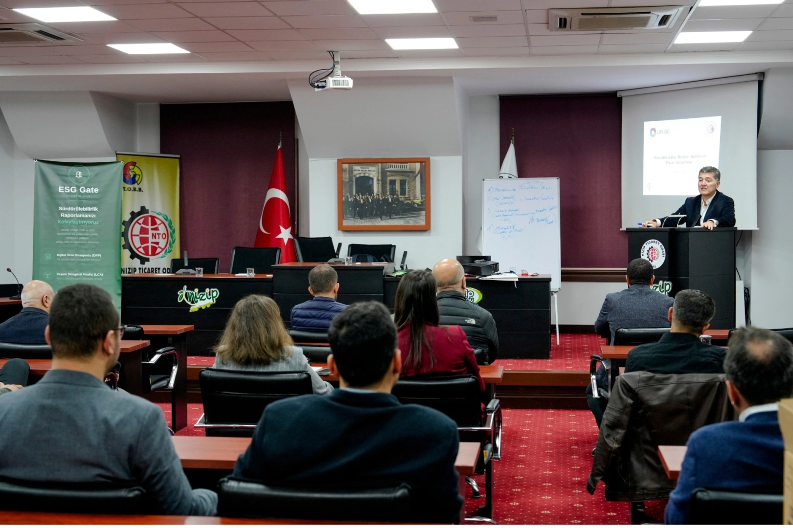 T.C. Ticaret Bakanlığı destekli ve Nizip Ticaret Odası (NTO) koordinasyonunda başarıyla yürütülen “Nizip Ticaret Odası Gıda İhracat Takımı UR-GE Projesi” kapsamında, üyelerin dış pazar rekabet gücünü artıracak stratejik bir eğitim programı daha gerçekleştirildi. NTO Toplantı Salonu’nda düzenlenen ve iki gün süren “Temel Dış Ticaret Eğitimi (İhracatta Satış, Müşteri Bulma ve Pazar Geliştirme)”, Barış Yaşbala ve Gökhan Erol sunumuyla ve yoğun bir katılımla tamamlandı.