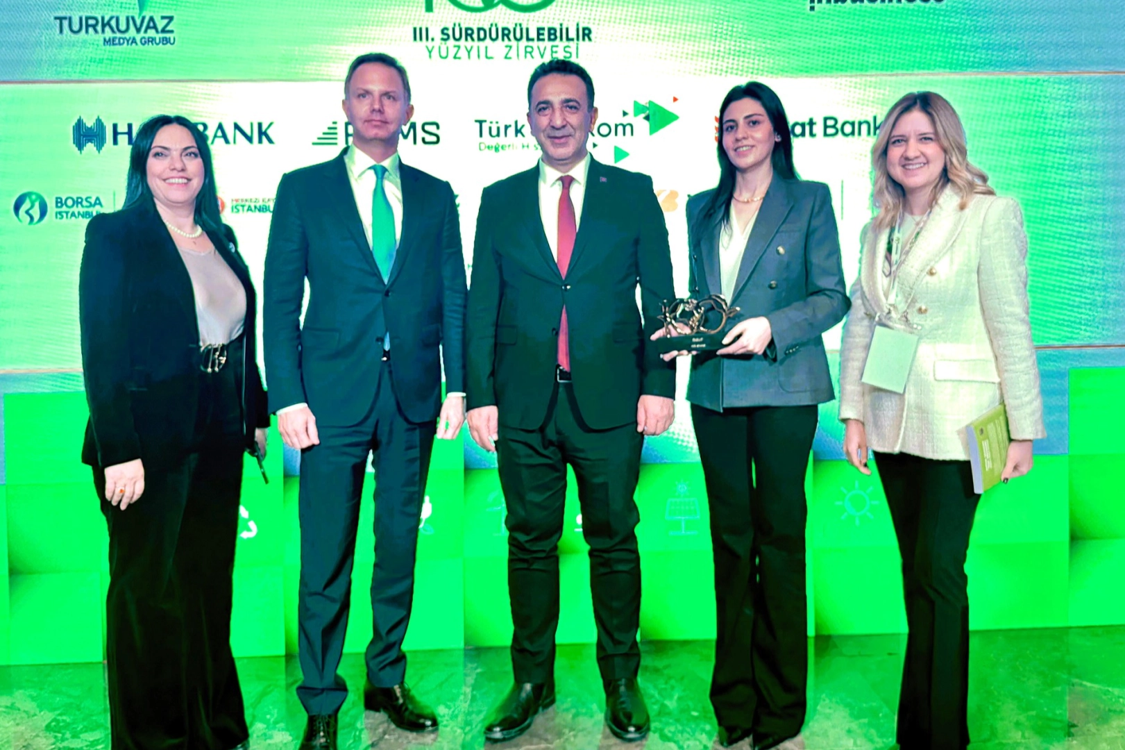Sürdürülebilirlik alanında iyi uygulamalar geliştiren, dönüşüme öncülük eden kurum ve liderlerin değerlendirildiği ödüller, III. Sürdürülebilir Yüzyıl Zirvesi kapsamında düzenlenen törende sahiplerini buldu. Törende ödül, T.C. Çevre, Şehircilik ve İklim Değişikliği Bakanlığı İklim Değişikliği Başkanı Prof. Dr. Halil Hasar tarafından RE&UP Büyüme ve Stratejiden Sorumlu Direktörü Engin Mete ile Büyüme ve Stratejiden Sorumlu Kıdemli Yöneticisi Gözde Konukoğlu’na takdim edildi.