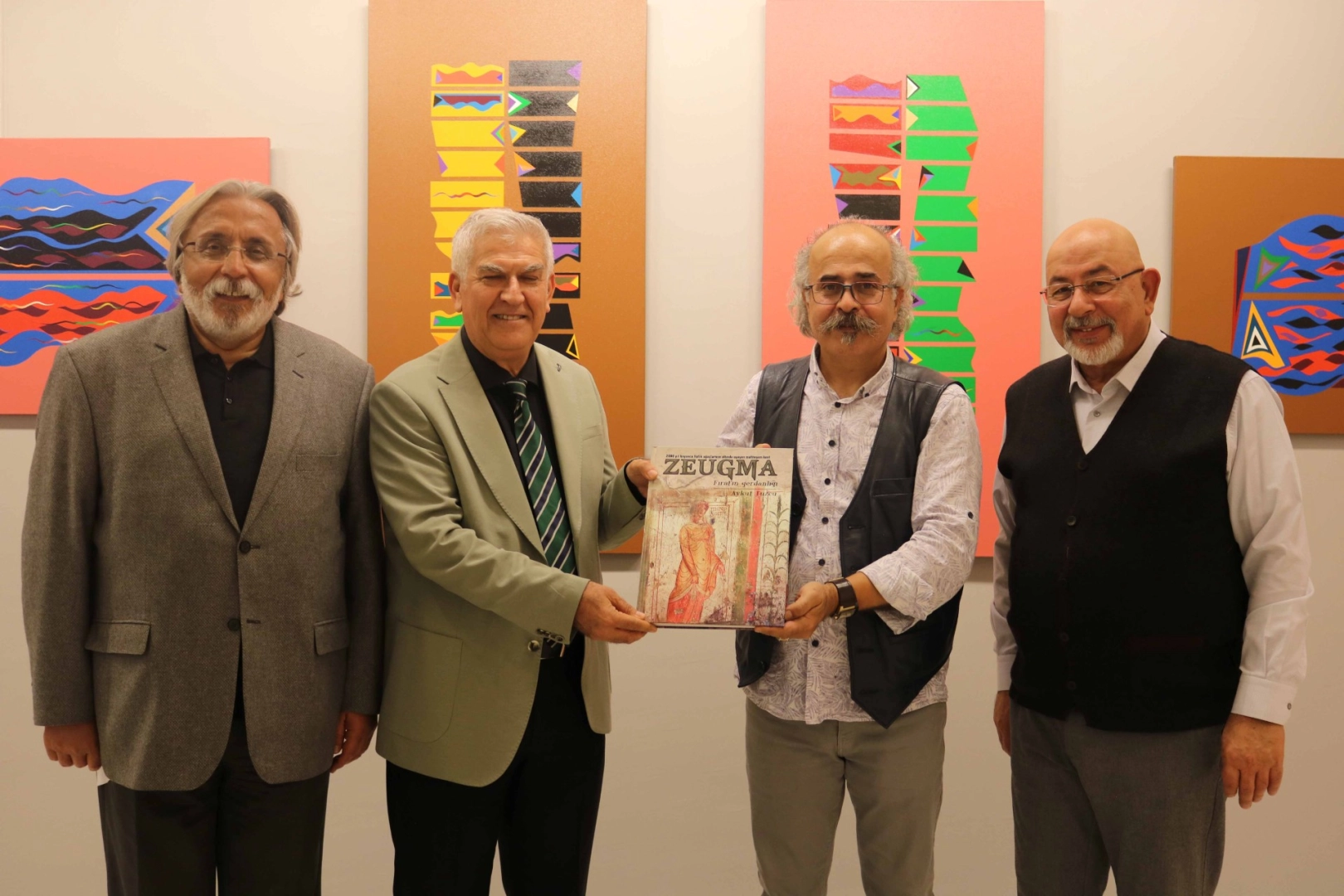 Konuşmaların ardından Gaziantep İl Kültür ve Turizm Müdür Yardımcısı Mehmet Aykanat, SANKO Holding adına “Zeugma Fırat’ın Gerdanlığı” isimli yayını Mehmet Ali Doğan’a takdim etti.