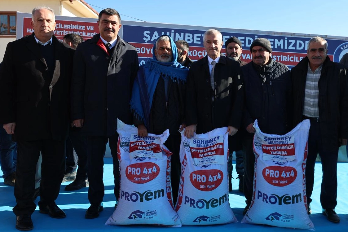 Hayvan yetiştiricilerine ve çiftçilere her zaman destek olduklarını ifade eden Şahinbey Belediye Başkanı Mehmet Tahmazoğlu, “8 Yıldır Şahinbey Belediyesi olarak küçükbaş ve büyükbaş hayvan yemi dağıtımı yaparak hayvan yetiştiricilerimize destek oluyoruz. Sadece bir yıl değil, sürekli çiftçimizin ve hayan yetiştiricilerimizin yanındayız. Hayvan yetiştiricilerimiz hayvan yemi çiftçilerimize buğday, arpa, gübre ve fide dağıtımlarımız her yıl geleneksel olarak devam ediyor. Bunlar sadece göstermelik yapılan işler değil. İstanbul'da veya başka yerde bazı belediyeler, iki kamyon silajlık mısır dağıtıyor. Bizim sadece bugün dağıtacağımız yem miktarı 7 bin ton. 101 milyon TL. Sadece yemden bahsediyorum. Bunun yanında gübresi, arpası, buğdayı, diğer fide desteklerimiz ve sürekli çalıştığımız arazi yollarımız ki sürekli yeniliyoruz. Şu anda 5 bin kilometrenin üzerinde arazi yolda yaptık” ifadelerini kullandı.