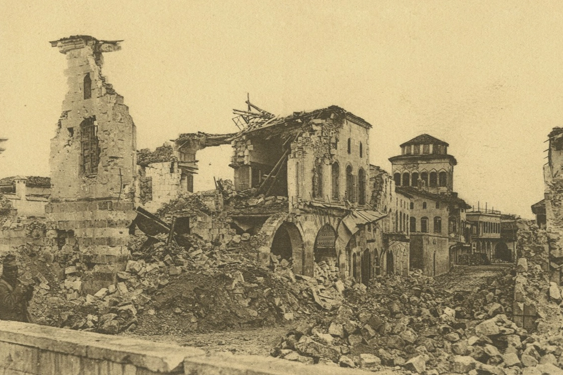 9 Şubat 1921’de Antep savunmasının sona ermesiyle şehrin hakimiyetini ele geçiren Fransızlar, bombardımanları sonucu yerle bir olan mekanların fotoğraflarını çekmişler.